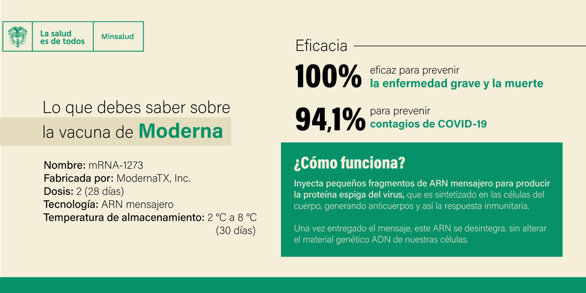 Minsaludcol On Twitter La Vacuna De Moderna Que Esta Siendo Distribuida En Todo El Territorio Nacional Es Segura Y Efectiva Capaz De Prevenir La Enfermedad Grave Y La Muerte Conoce Mas Sobre from pbs.twimg.com May 25, 2021 · la compañía anunció que presentará una solicitud de autorización a comienzos de junio para que el biológico sea aplicado a esa población. La eficacia de la vacuna es máxima cuando las dosis se espacian adecuadamente. Jan 08, 2021 · la vacuna de moderna es algo más potente que la de pfizer, con eficacia similar en mayores y más manejable para los ambulatorios. Se puede almacenar a temperatura del refrigerador hasta por 30 días: Reacciones alérgicas a estas vacunas son bajas, según los cdc 2:20 Jul 20, 2021 · la vacuna de janssen (johnson & johnson) es más duradera que cualquiera de las vacunas de arnm autorizadas. La vacuna de janssen (johnson & johnson) solo requiere una dosis. La vacuna de cuba contra el.